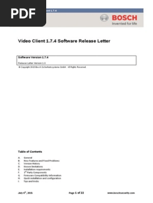 Bosch Releaseletter Videoclient 1 7 4 Digital Video Recorder